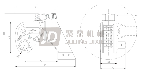 二、MXTD鋁鈦合金驅動液壓扭矩扳手技術參數: